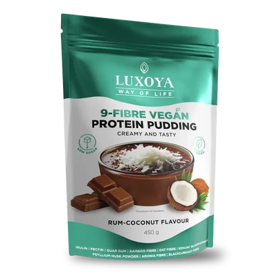 LUXOYA - 9-FIBRE VEGAN PROTEIN PUDDING - VEGÁN FEHÉRJÉT TARTALMAZÓ ROSTPUDING 450 g Rumos-kókuszos csokoládé